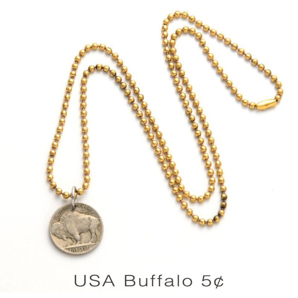 アメリカ、フランス、イタリア、北欧で実際に流通されていたコインを使用したペンダントやバングル。トップに使用している各国の硬貨は現在は生産・流通が終了しているものもあり、コレクター人気の高いアイテムでもあります。コインごとのユーズド感がバックストーリーを彷彿とさせてくれます。ユニセックスに使用できるデザイン。ご自身はもちろん、大切な方へのプレゼントにもオススメです。