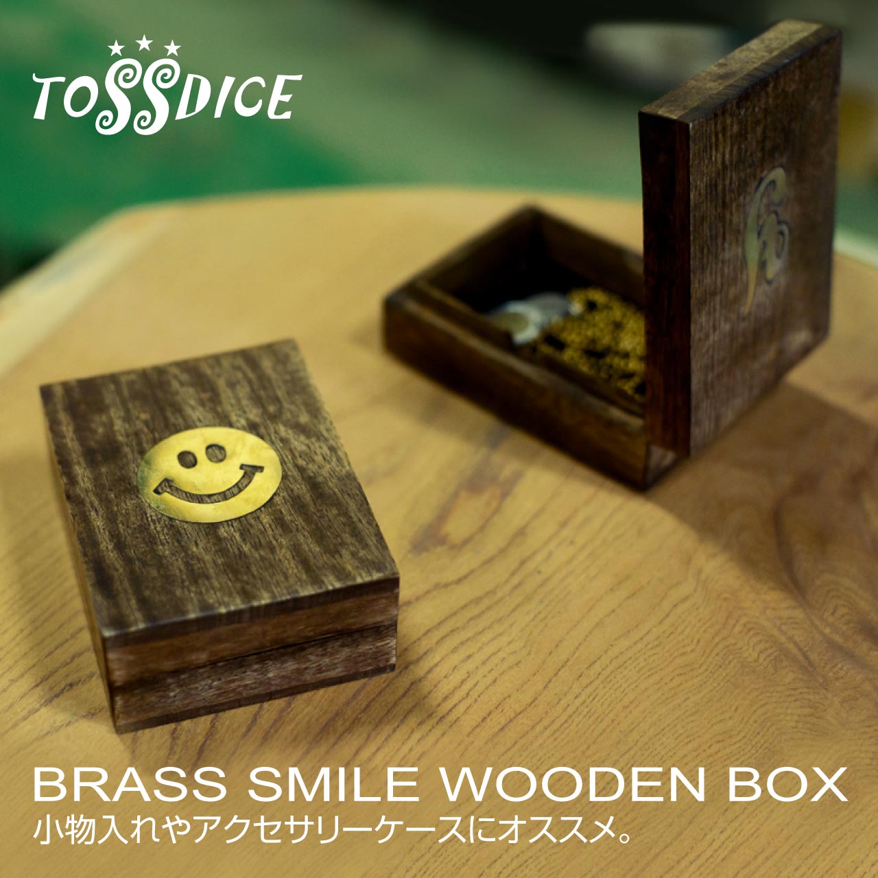 小物入れやアクセサリーケースにオススメ。BRASS SMILE WOODEN BOX