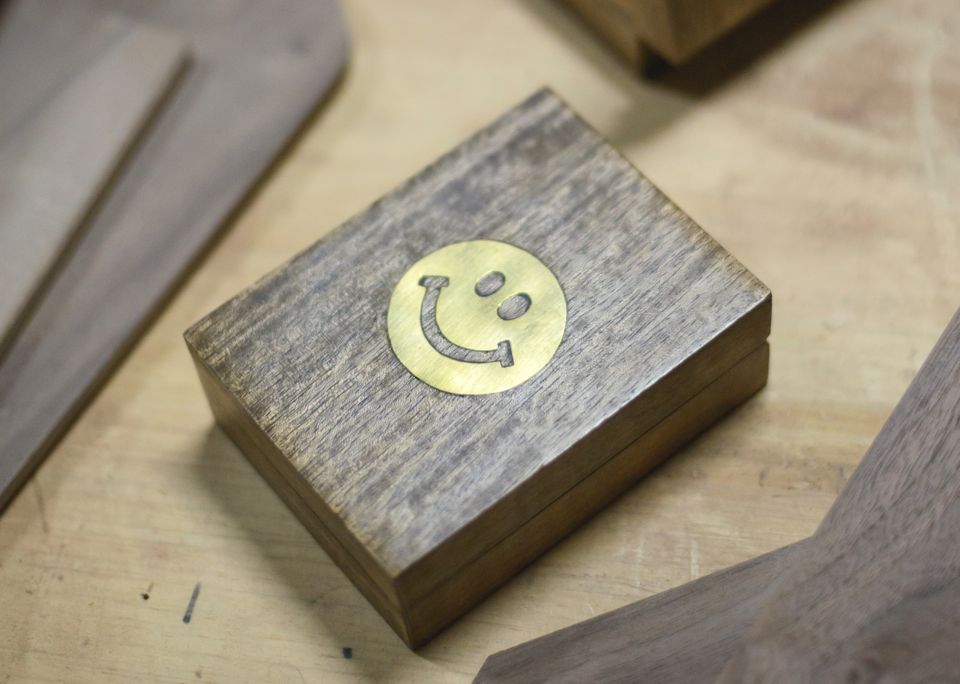 ハンドメイドで削り出したスマイルの真鍮を、ウッドケースに埋め込んだボックスです。小物やアクセサリーケースとしてご使用になれます。