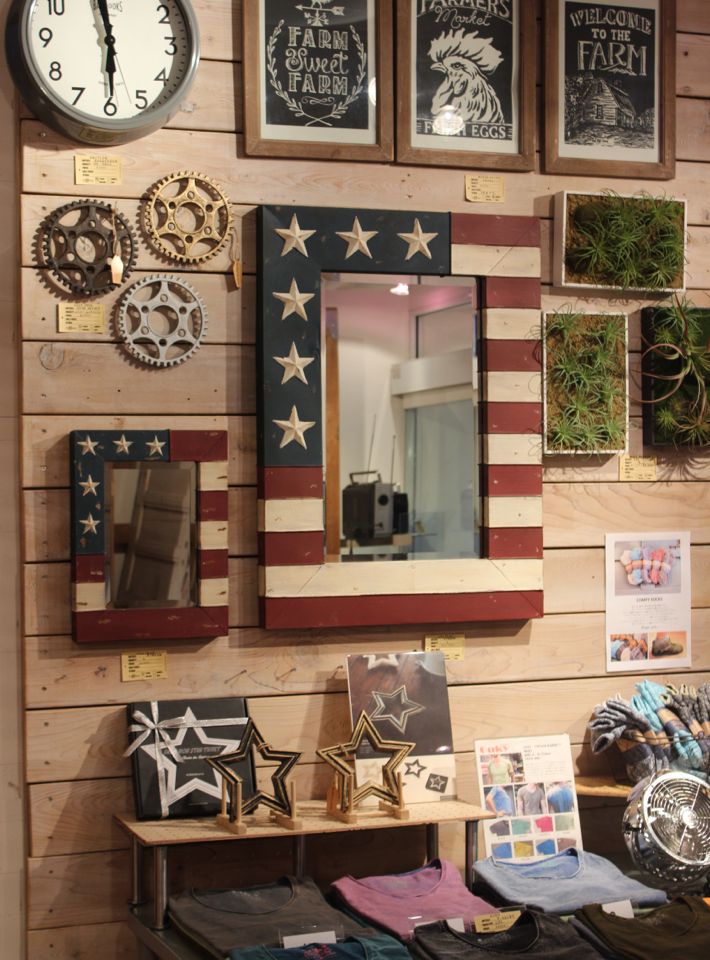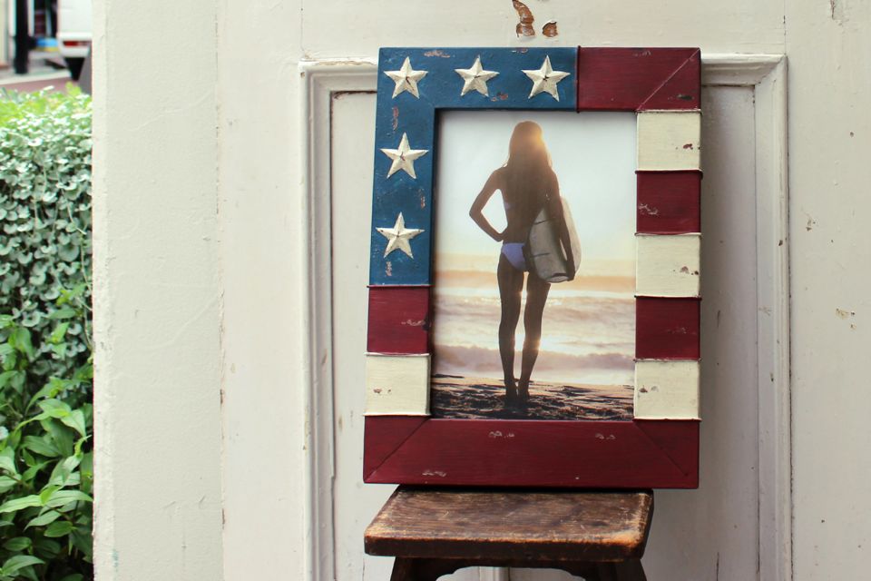 USAフラッグモチーフのミラーです。アンティーク仕上げされたアイアンのフレームが、無骨ながらどこか洗練された雰囲気になっており、アイディア次第でどんなお部屋でも主役になることができるインテリアです。