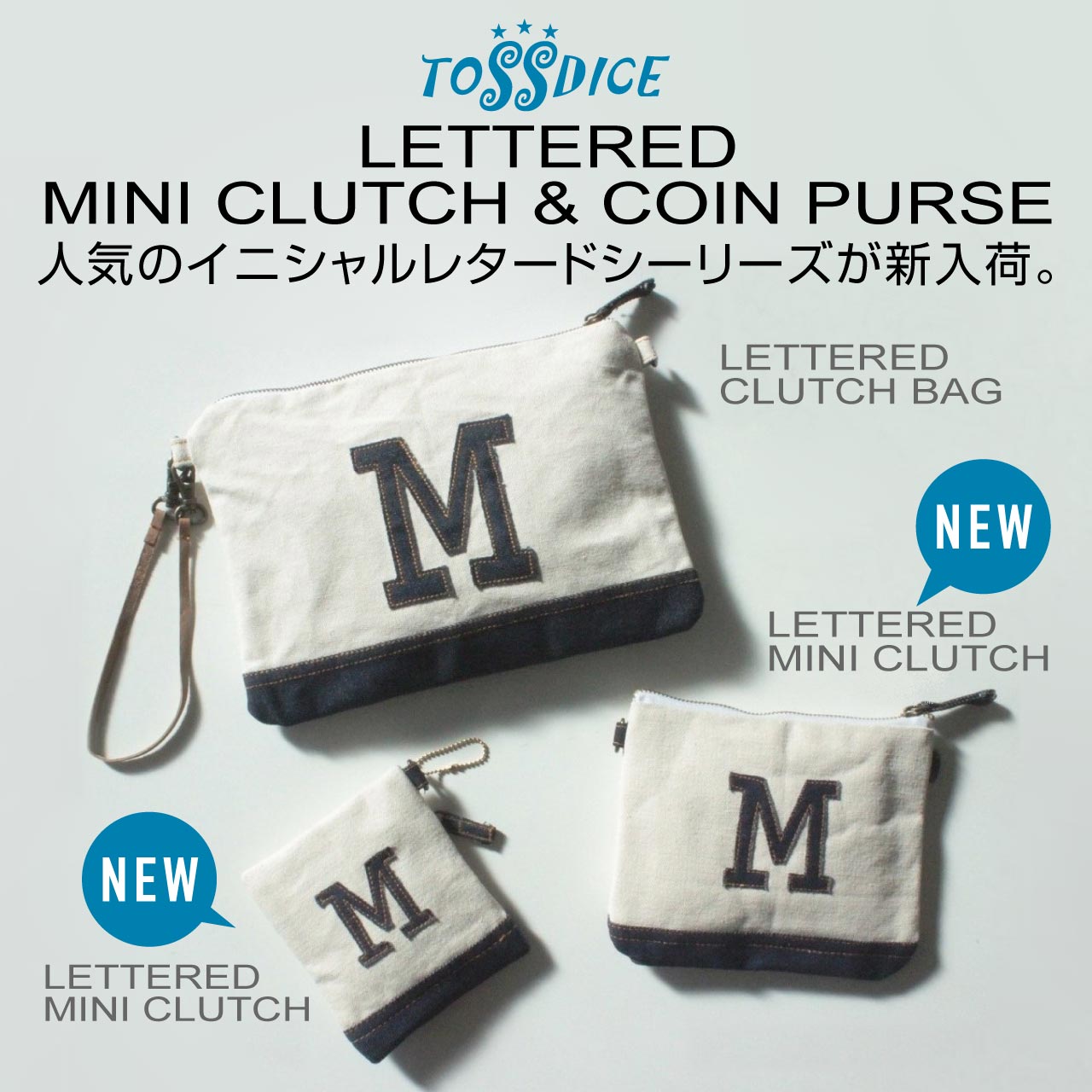 27 Dec LETTERED MINI CLUTCH & COIN PURSE 新入荷。 tossdice 0 News LETTERED COIN PURSE & MINI CLUTCH 新入荷。 今年も残すところあと4日となりました。一年間、TOSSDICE ONLINE STORE をご利用いただき誠にありがとうございました。 2020年も、どうぞよろしくお願いいたします。 本日は、人気のイニシャルレタードシーリーズ新入荷のお知らせをいたします。 ミニクラッチはバッグの中でちらばってしまう小物を仕分けるポーチとしても◎ コインパースは、小銭入れや小物ポーチとしても使えて、インナーにカードスリット付きで IC カードを入れておく事もできます。 イニシャルは全部で12種類。ギフトにも好評です。Check しみてくださいね。 それでは、よいお年をお迎えください。 商品のご購入はこちらから Share this:クリックして Twitter で共有 (新しいウィンドウで開きます)Facebook で共有するにはクリックしてください (新しいウィンドウで開きます)クリックして Google+ で共有 (新しいウィンドウで開きます) 関連 Share Post Tags: LETTERED COIN PURSEBAG